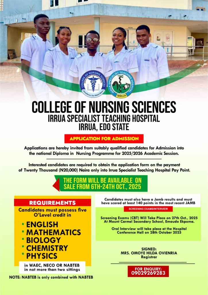 The College of Nursing Sciences, Irrua Specialist Teaching Hospital (ISTH), Edo State, invites applications from suitably qualified candidates for admission […]